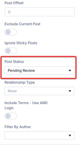 PRO TIP: You can select multiple post statuses if needed. For example, you might want to show both “pending” and “draft” posts in the same section.